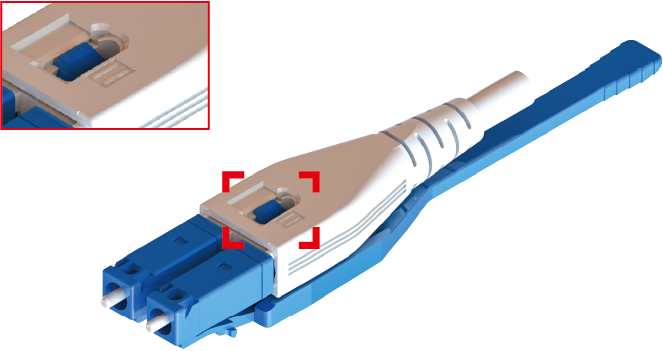 このアップグレードモデルは、高密度パネルでの抜挿作業を容易にする精密グラッピング・プッシュプルロッドを装備している。さらに、当社ではこのコネクタのショートタイプも提供可能。いずれのタイプも、工具不要の簡易「押し下げて反転」方式による極性変換機能を備えており、設置現場で極性を変換可能かつ光ファイバの露出を防止する。