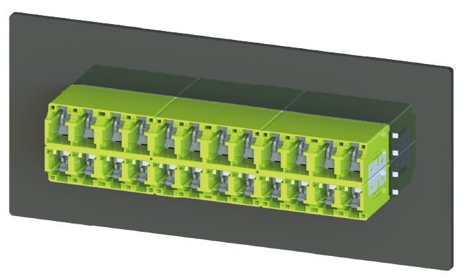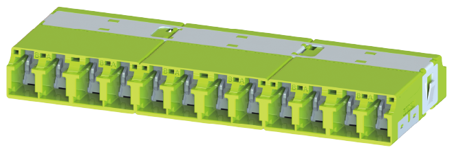 新型 LCインターナルシャッタースリムパッククラスタコネクタは高さを9.6ミリにまで低減し、高密度実装を実現している。インターナルシャッターはセラミックフェルールを保護すると同時に、レーザー放射、塵やその他の汚染物質を効果的に遮断する。